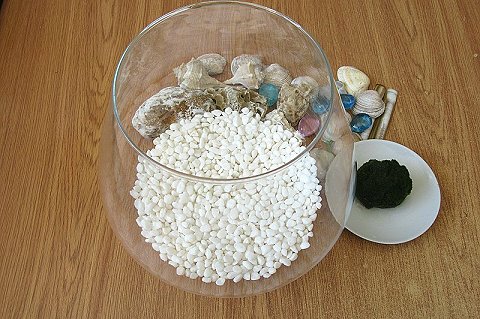 Η γυάλα εκτός από νερό θα χρειαστεί και κάποια άλλα πράγματα. Όπως άμμο ή χαλίκι ενυδρείου που μπορείτε να τα βρείτε εύκολα. Επίσης με την ευκαιρία θα αξιοποιήσετε και κάποιους από τους "θησαυρούς" που μαζεύετε από τις παραλίες κάθε καλοκαίρι. Κογχύλια, όστρακα, γυαλιά, περίεργες πέτρες και ξύλα είναι θαυμάσια αξεσουάρ για να στολίσουν το ενυδρείο σας. Βέβαια αν σας περισσεύει η φαντασία και κάποια διακοσμητικά μπιχλιμπίδια στο σπίτι μπορείτε να γεμίσετε το ενυδρείο με μινιατούρες. Καραβάκια, σπιτάκια, αγαλματάκια, μπουκαλάκια, και πάει λέγοντας,